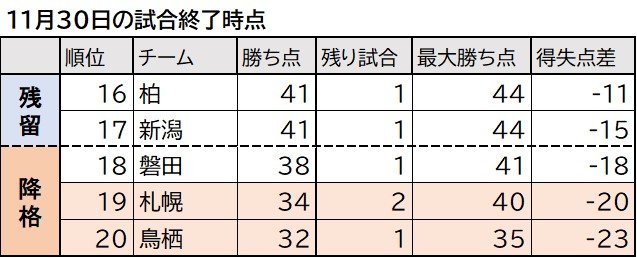 | J1残留へ遠い“勝ち点1”…自力残留一転崖っぷち!?最終節にもつれ込んだ残留争い アルビレックス新潟の残留条件・ポイントは「気持ちの面を整えることが重要」 …47のため、総得点で順位を争う場合は磐田に分がある。 ■最終節の相手は「鬼門」浦和レッズアルビOBで、現在はアルビレックス新潟営業部の野澤洋輔さんは… (出典:) |